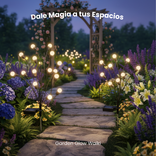 Garden Glow Waiki transforma tus noches al aire libre con luces que simulan luciérnagas, creando un ambiente cálido y encantador. Durante el día se carga con energía solar y a la noche se enciende sola, iluminando hasta 10 horas sin cables ni gastos eléctricos.
