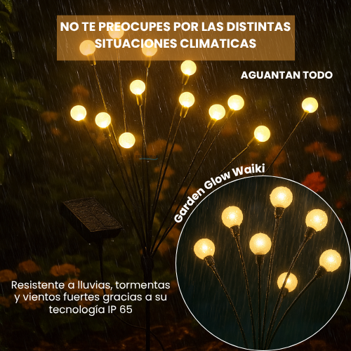 Convertí tu jardín en el lugar favorito de la casa con luces cálidas que recrean el brillo de las luciérnagas. Garden Glow Waiki no solo aporta belleza y romanticismo, también se instala en segundos, funciona con energía solar y aguanta lluvia y viento sin problemas.