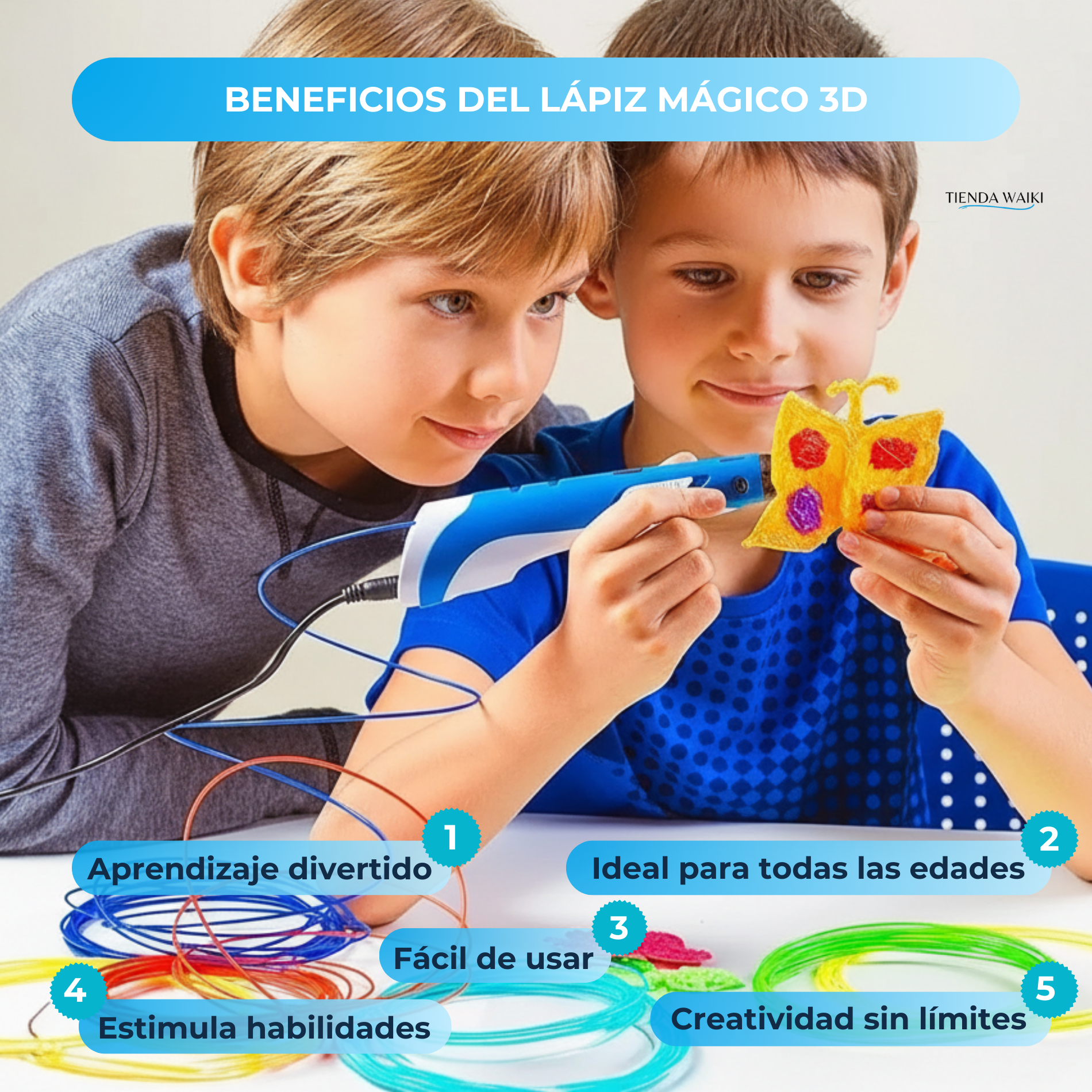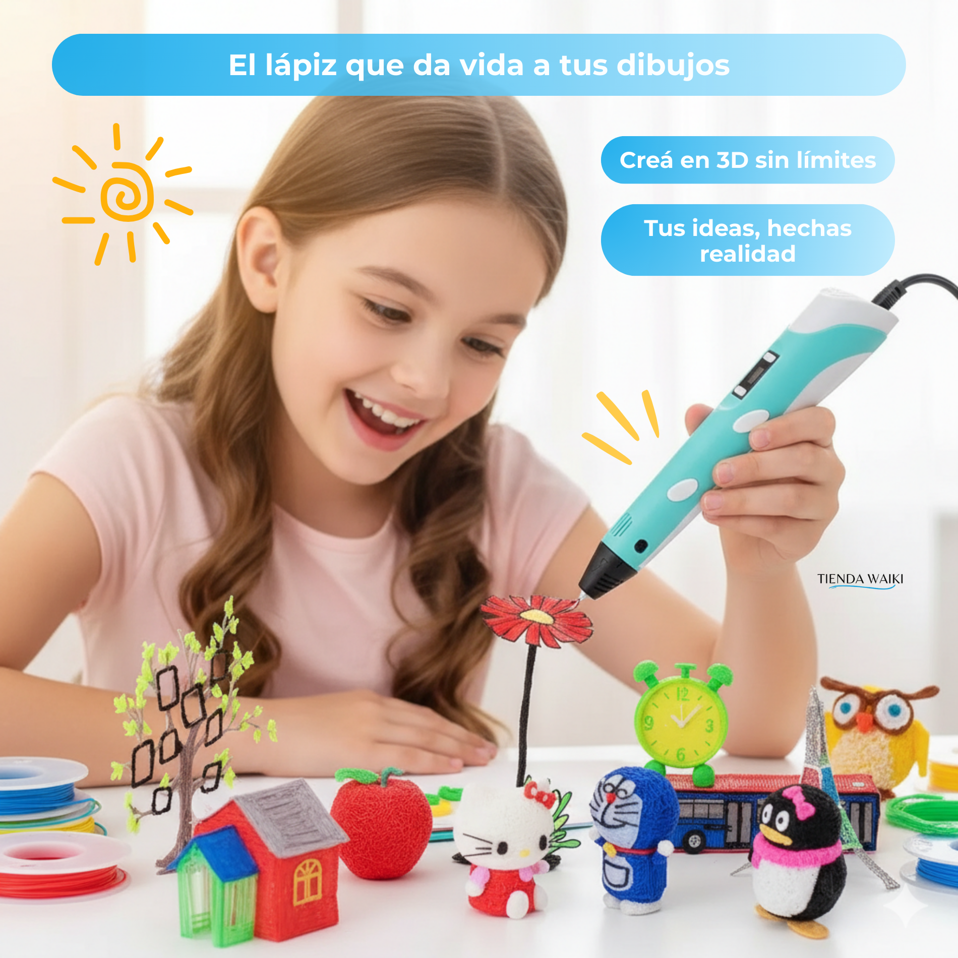 Tus dibujos ya no quedan en el papel. Con el lápiz 3D los chicos pueden crear figuras reales, construir objetos y dar vida a sus ideas, estimulando su creatividad mientras se divierten